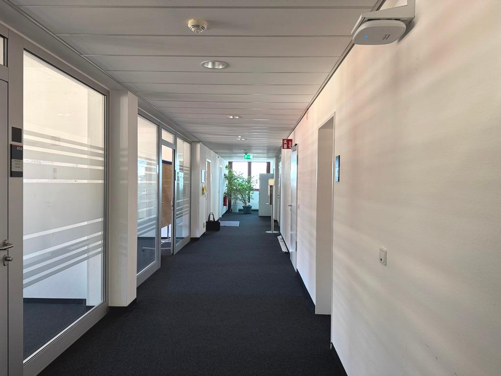 Im Inneren bietet das Gebäude Raum für moderne Arbeitswelten: Die Flächen zeichnen sich durch flexible Grundrisse aus, die sowohl klassische Bürostrukturen als auch offene, moderne Arbeitskonzepte ermöglichen. Damit bietet das Gebäude eine hohe Anpassungsfähigkeit an unterschiedliche Anforderungen und Unternehmensgrößen.