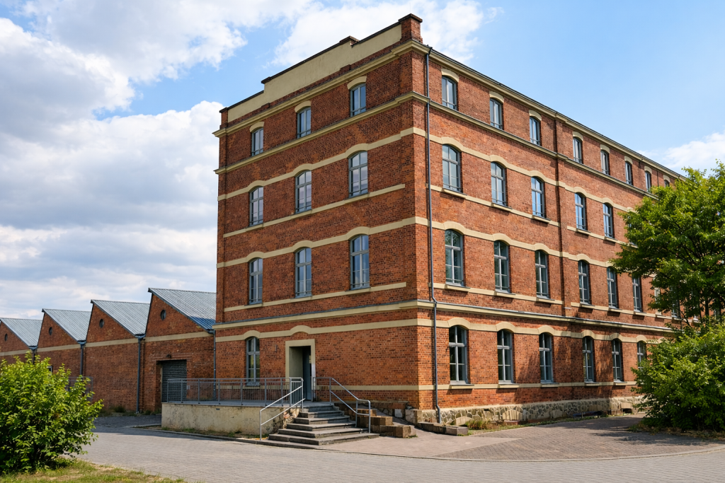 Der Handwerkerhof in Gera verbindet die repräsentative Architektur eines historischen Industrieensembles mit flexibel nutzbaren, modernen Büroflächen: In dem ehemaligen Verwaltungsgebäude der früheren Filztuchfabrik prägen roter Klinker, große Fensterflächen und der charakteristische Industriecharme den Außenauftritt.