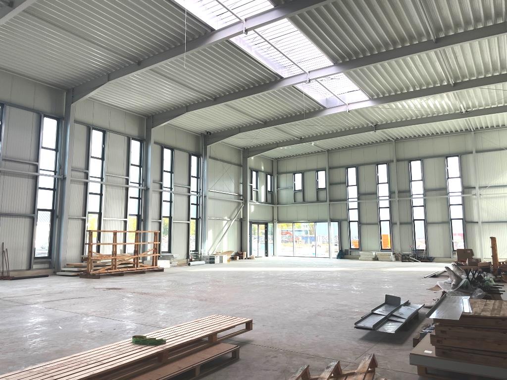 Aufgrund der strategisch günstigen Lage, der energieeffizienten Bauweise und der modernen Architektur setzt der Gewerbepark Maßstäbe auf höchstem Niveau. Aktuell sind zwei Hallenneubauten in der Erstellung, die ab dem II. Quartal 2026 bezogen werden können. Die frei verfügbaren Hallenflächen betragen ca. 1.700 m² und sind ab ca. 400 m² teilbar. Die Hallen verfügen über bis zu 8 m Deckenhöhe sowie ebenerdig andienbare Tore (3,50 m x 4,20 m). Sie werden über eine energieeffiziente Wärmepumpe beheizt und gekühlt. Außerdem wird eine Anlieferung über LKW-Laderampen möglich sein. Ein integrierter Bürotrakt ist in einem zusätzlichen Mezzaningeschoss vorgesehen - insgesamt bis zu 400 m².